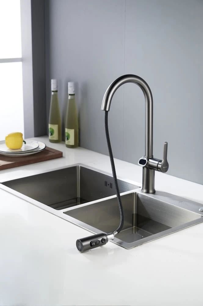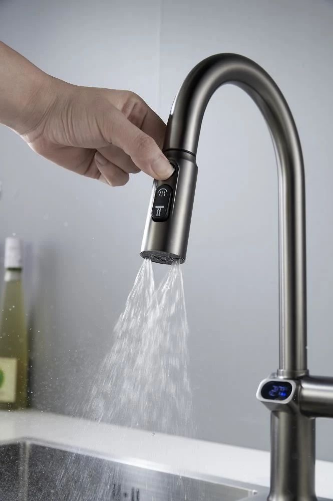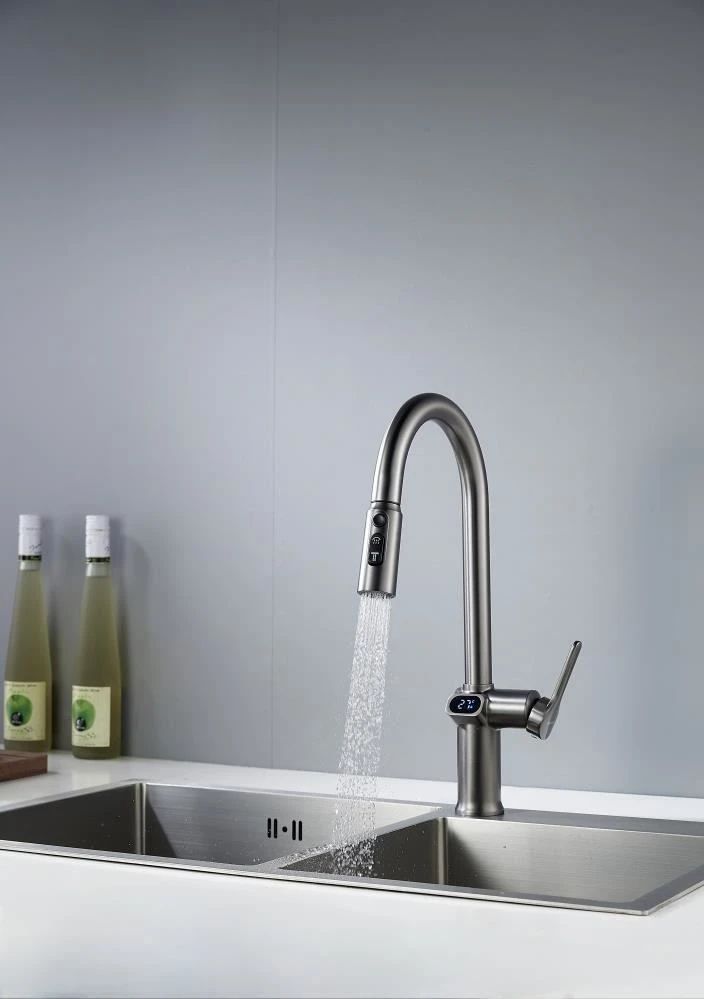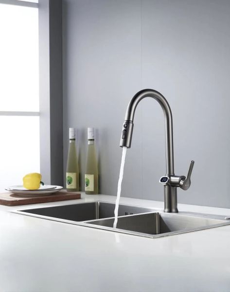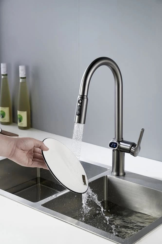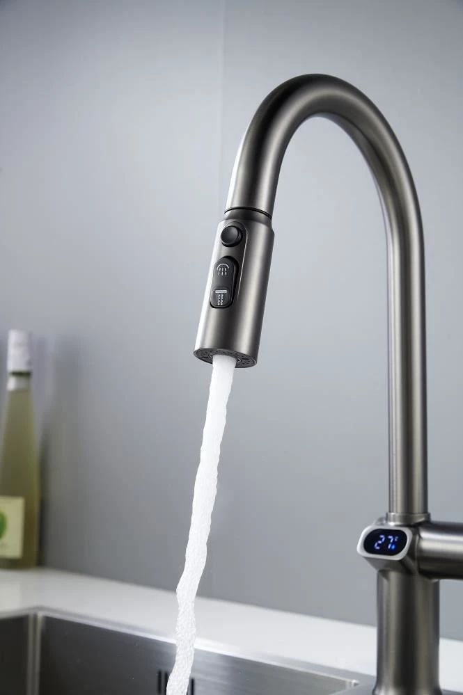 Смеситель для кухни с индикатором температуры Knotlor KN-100/GM, вороненая сталь