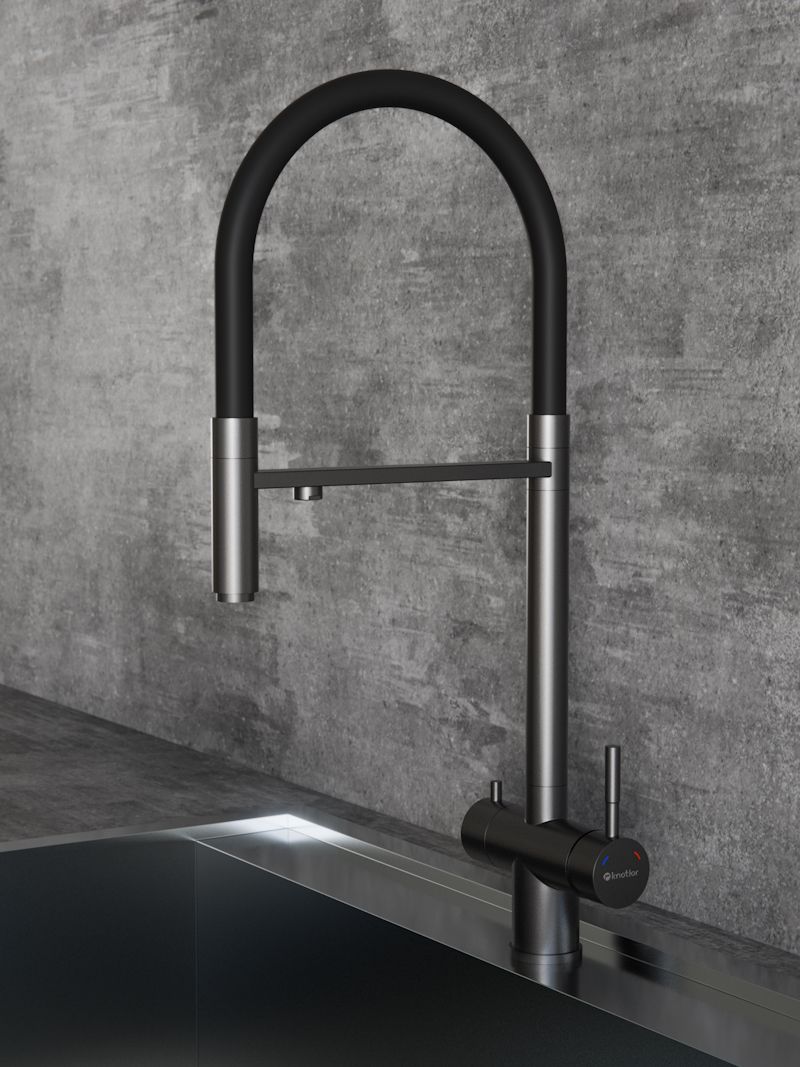 Смеситель для кухни с подключением фильтра Knotlor SS-16/GM, вороненая сталь