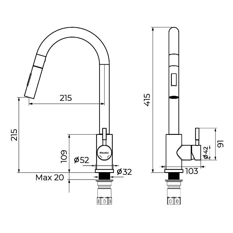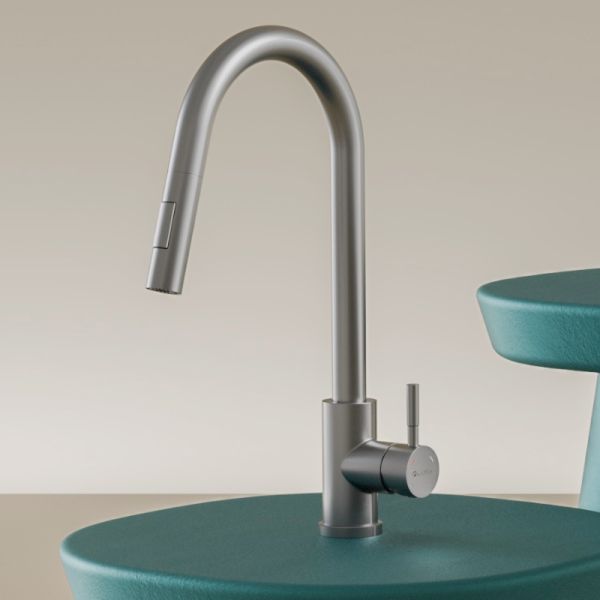 Смеситель для кухни с выдвижным изливом Knotlor SS-09, сатин