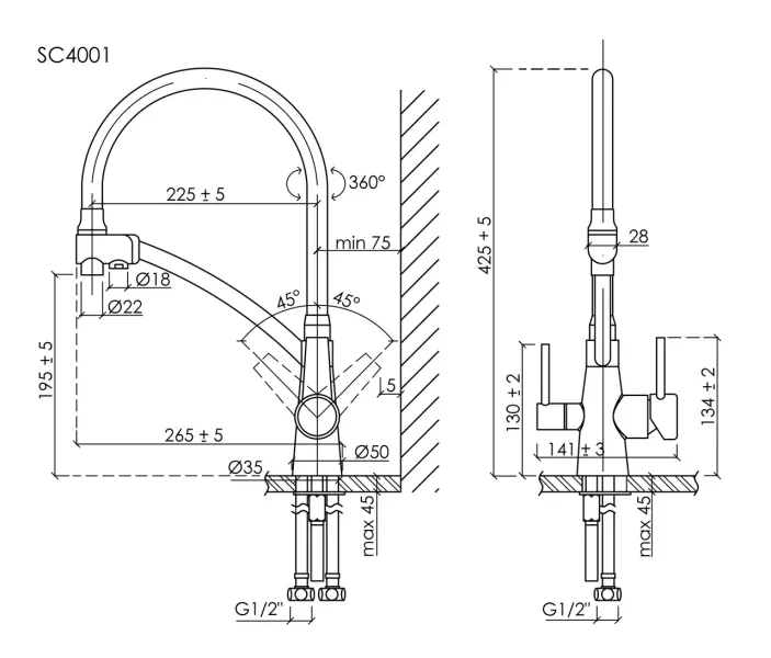• Высота смесителя: