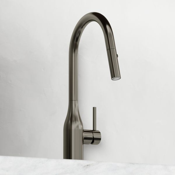 Смеситель для кухни SANCOS Grand c вытяжным и поворотным изливом, цвет вороненая сталь, арт. SC4002GGС возможностью регулировки температуры водыАэратор, гибкая подводка, ключ и крепления для монтажа, ключ для обслуживания аэратора