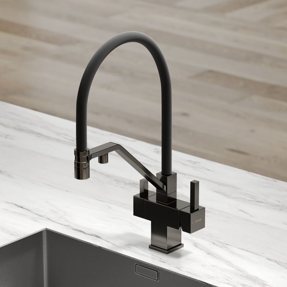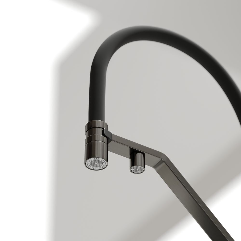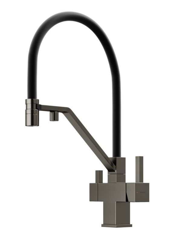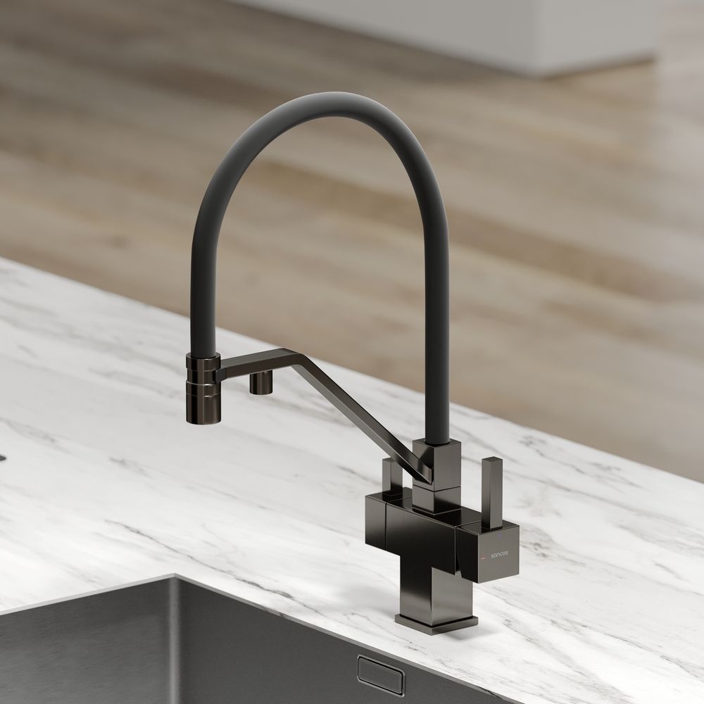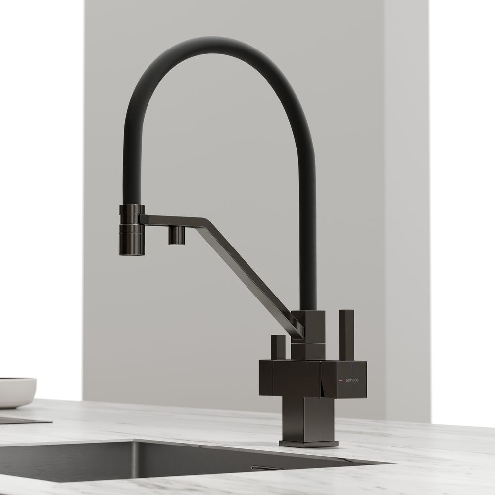 Смеситель для кухни SANCOS Loro с гибким изливом и возможностью подключения фильтра для воды, цвет вороненая сталь, арт. SC4007GGФункция "Холодный старт" - при включении смесителя активируется холодной поток, для экономии горячей водыАэратор, гибкая подводка, ключ и крепления для монтажа