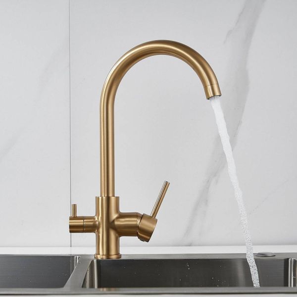 Смеситель для кухни Shevanik S128G с подключением фильтра золотой сатин