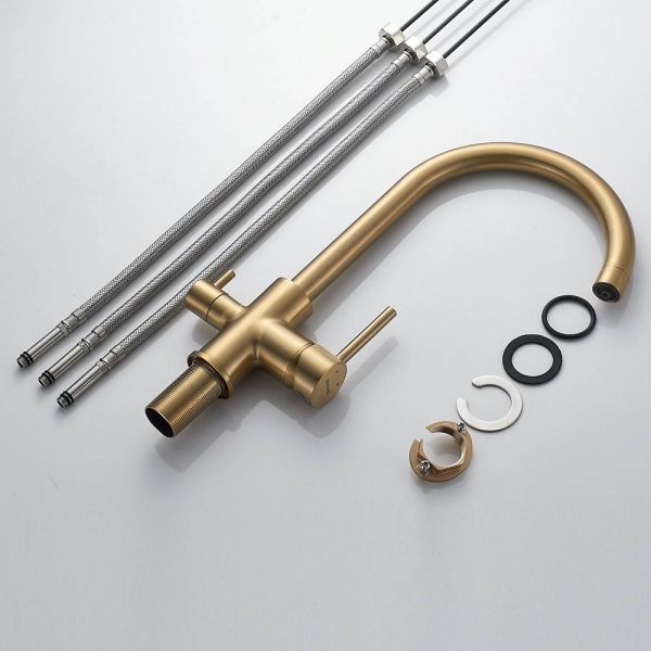 Смеситель для кухни Shevanik S128G с подключением фильтра золотой сатин купить