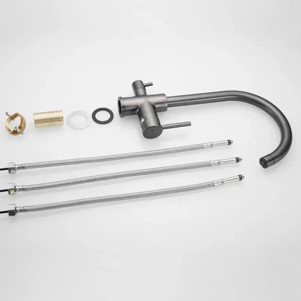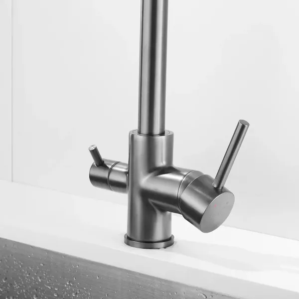 Смеситель для кухни Shevanik S128T с подключением фильтра оружейная сталь