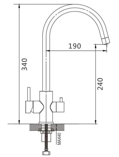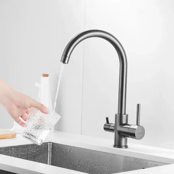 Смеситель для кухни с подключением фильтра Shevanik S128T, оружейная сталь.Управление: рычажное.Вращение излива: да.Выдвижной излив: нет.Гибкий излив: нет.Высота:34.