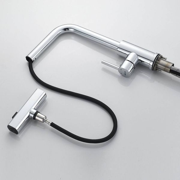 Одним из ключевых преимуществ данного смесителя является съемный выдвижной поворотный излив, который можно легко снять и повернуть в любую сторону. Излив доступен в том же цвете, что и корпус смесителя, что позволяет ему идеально сочетаться с любым кухонным интерьером.