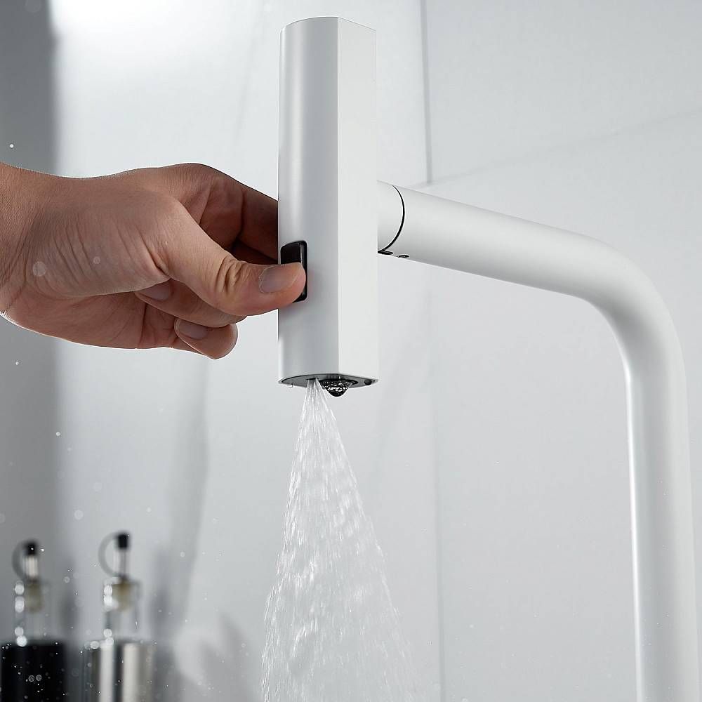 Одним из ключевых преимуществ данного смесителя является съемный выдвижной поворотный излив, который можно легко снять и повернуть в любую сторону. Излив доступен в том же цвете, что и корпус смесителя, что позволяет ему идеально сочетаться с любым кухонным интерьером.