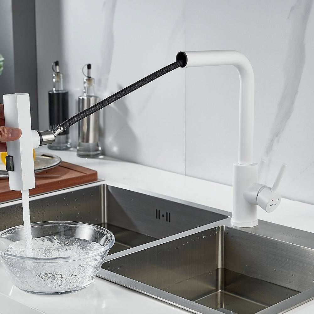 Смеситель для кухни Shevanik S263C с мультифункциональным изливом белый купить