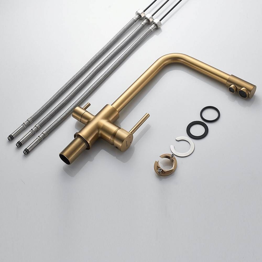 Смеситель для кухни Shevanik S328G с подключением фильтра золотой сатин купить