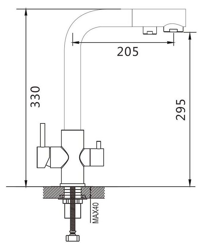 • Высота смесителя: