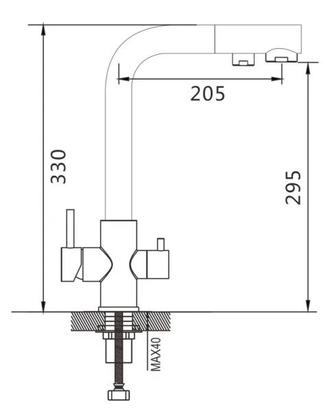 Смеситель для кухни с подключением фильтра Shevanik S328H, черный.Управление: рычажное.Вращение излива: да.Выдвижной излив: нет.Гибкий излив: нет.Высота:33.