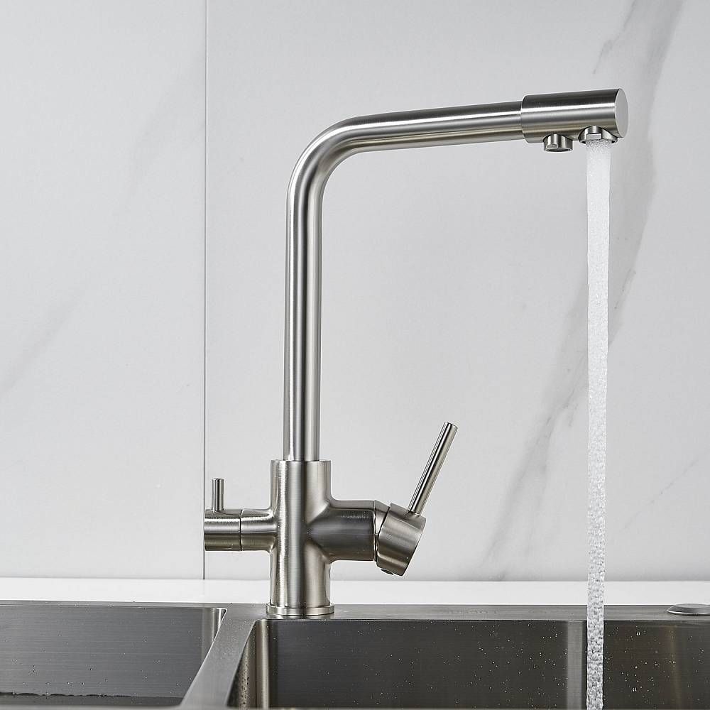 Смеситель для кухни Shevanik S328L с подключением фильтра сатин купить