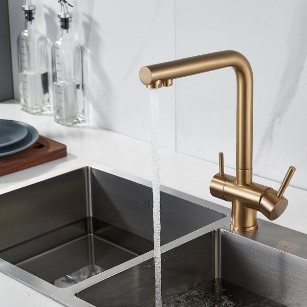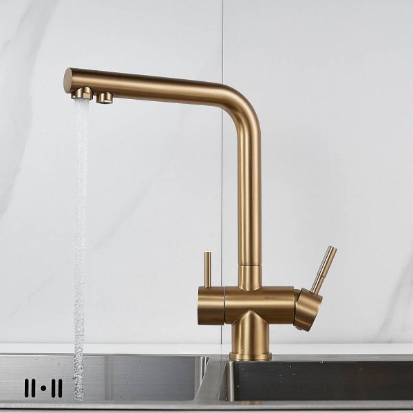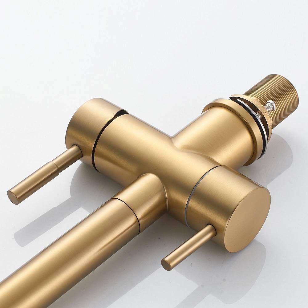 Смеситель для кухни Shevanik S468G с подключением фильтра золотой сатин