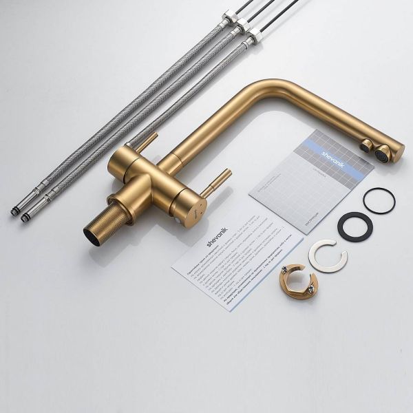 Смеситель для кухни Shevanik S468G с подключением фильтра золотой сатин купить