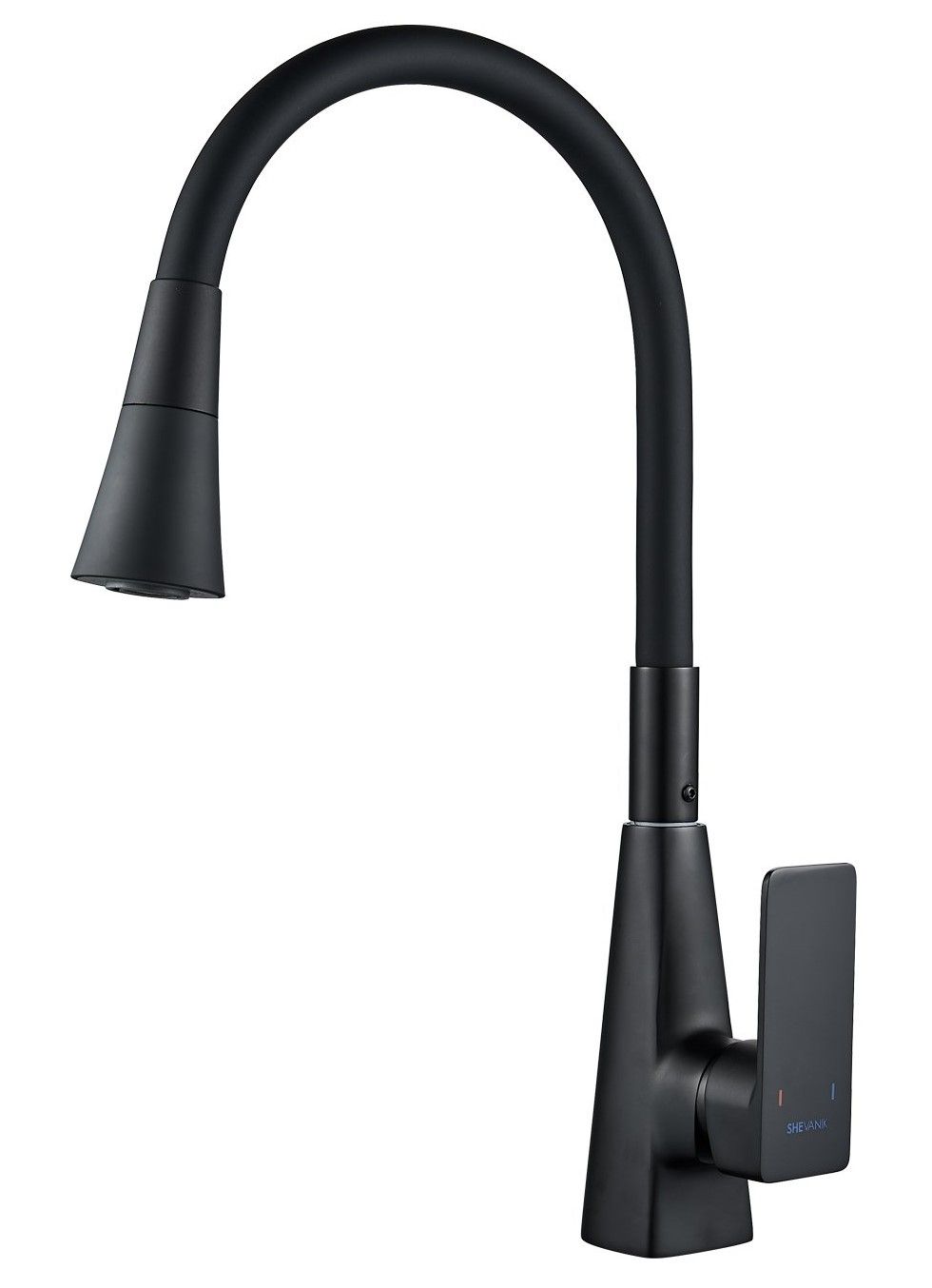 Смеситель для кухни с гибким изливом Shevanik S543H-3, черный.Управление: рычажное.Вращение излива: да.Выдвижной излив: нет.Гибкий излив: да.Высота:37,5.