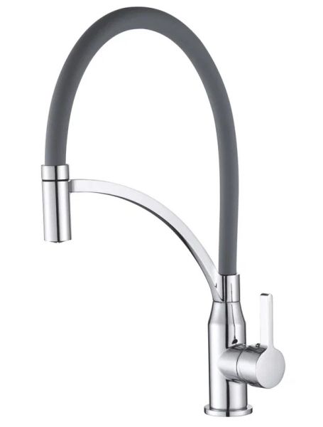 Смеситель для кухни с гибким изливом Shevanik S643-9, хром/серый.Управление: рычажное.Вращение излива: да.Выдвижной излив: нет.Гибкий излив: да.Высота:43,8.