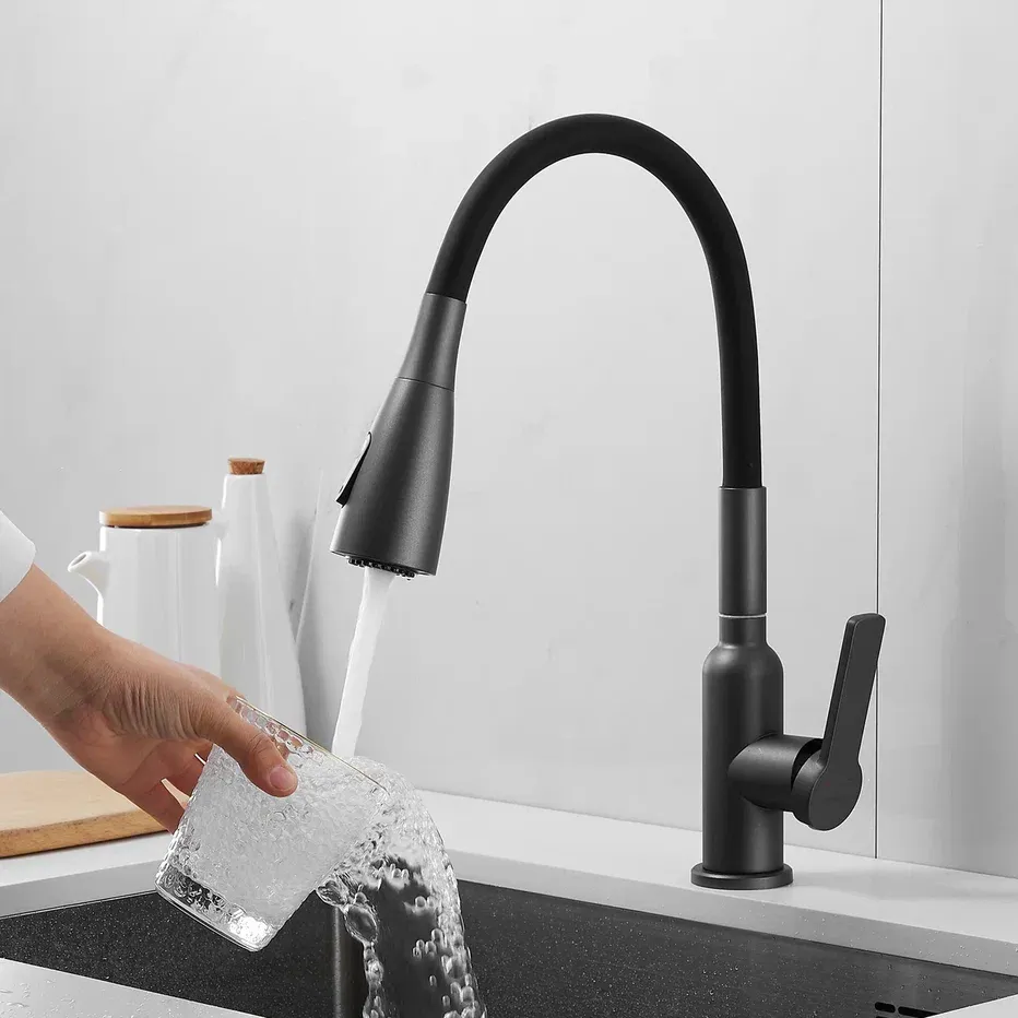 Смеситель для кухни Shevanik S843T-3 оружейная сталь/чёрный