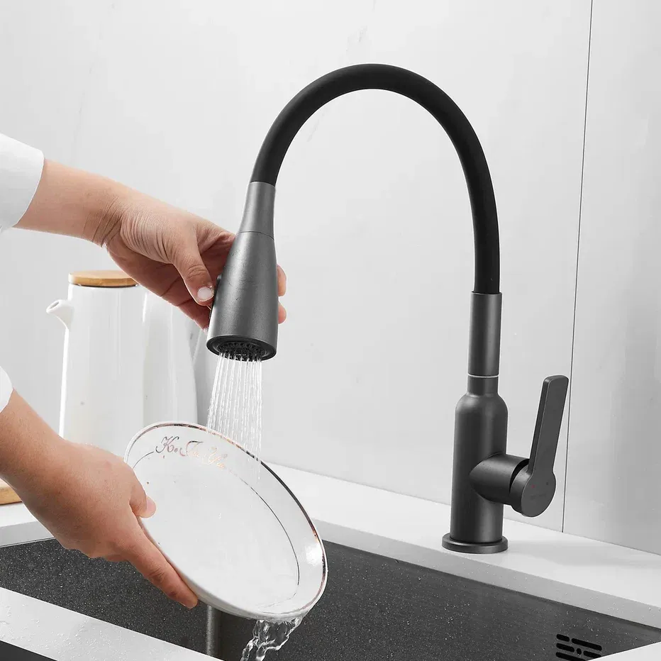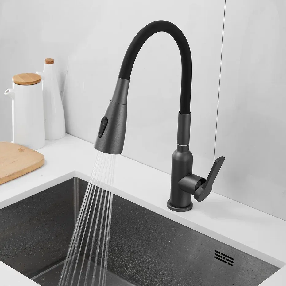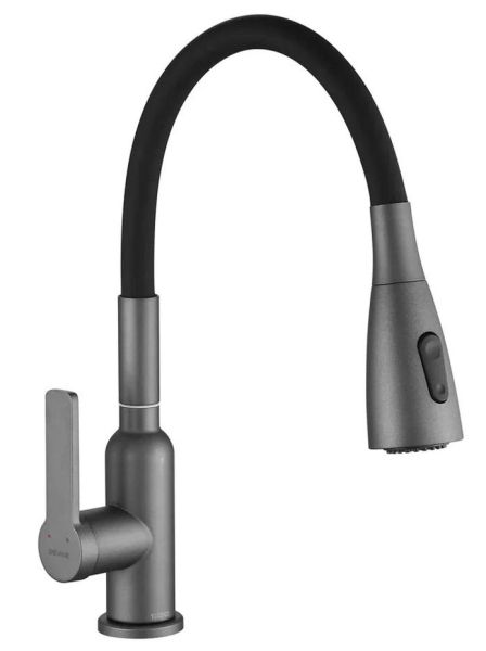 Смеситель для кухни с гибким изливом Shevanik S843T-3, оружейная сталь/черный.Управление: рычажное.Вращение излива: да.Выдвижной излив: нет.Гибкий излив: да.Высота:45.