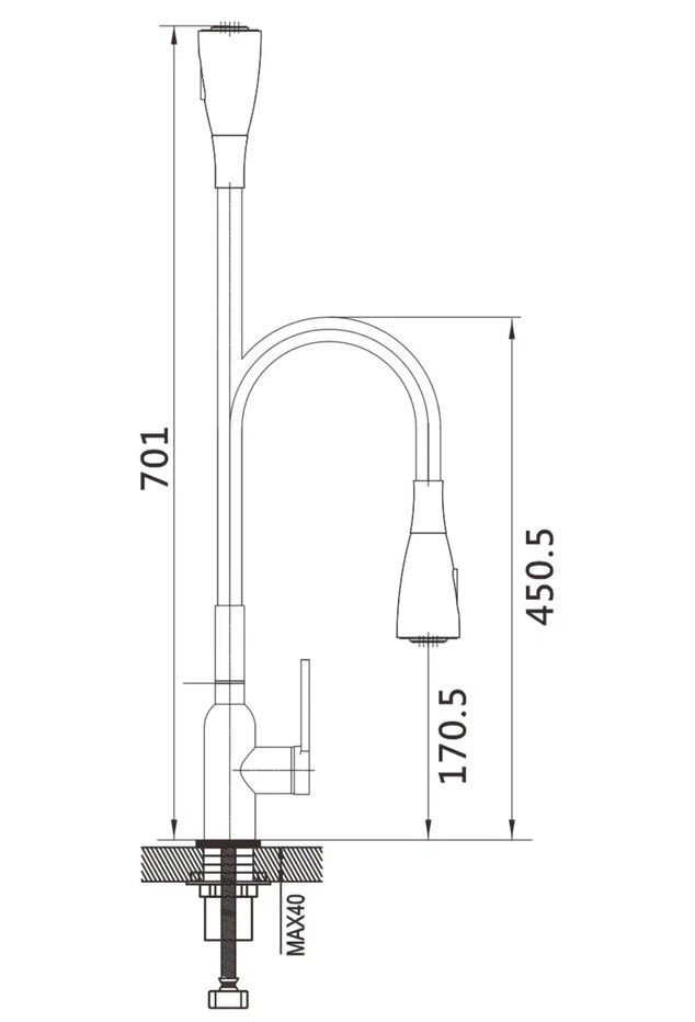 • Высота смесителя: