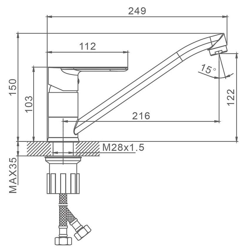 • Высота смесителя:
