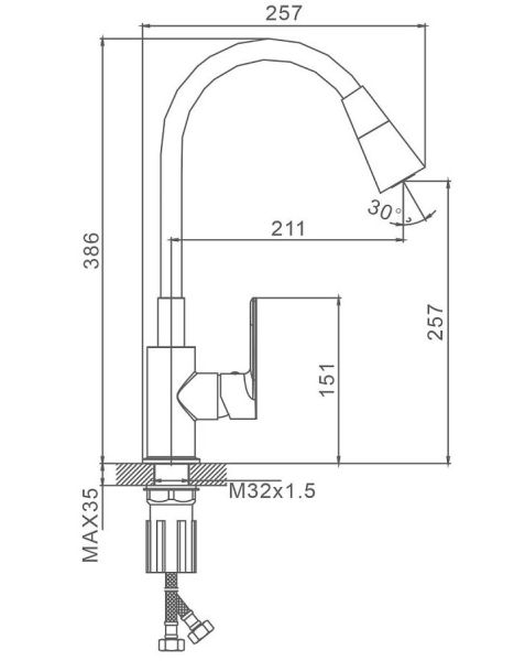 • Высота смесителя:
