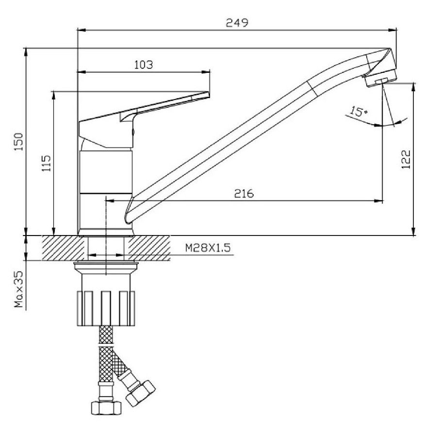 Смеситель для кухни Splenka S07.42. Цвет: хром. Гибкая подводка 50 см идет в комплекте. Благодаря грамотно разработанной конструкции, прибор отлично справляется с регулированием температуры и напора потоков воды. Однорычажные смесители максимально удобны при эксплуатации, всего одним движением руки можно закрыть или открыть воду, имеют стильный внешний вид, а также комфортность в использовании. Гарантия 5 лет.