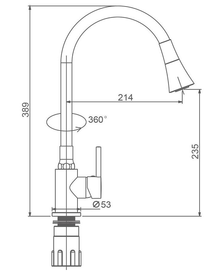 • Высота смесителя: