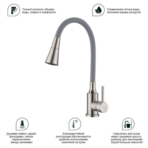 Смеситель для кухни Splenka S201.4307.05, цвет - сатин. Данный кухонный смеситель с аэратором - идеальный выбор для тех, кто ищет надежное и функциональное оборудование для своей кухни. Он обладает рядом преимуществ, которые позволяют использовать его с максимальной эффективностью. Кран выполнен из высококачественных материалов, что гарантирует его долговечность и надежность. Он прекрасно подойдет для использования в условиях повышенной влажности и температуры. Кроме того, обеспечивает плавное регулирование потока воды, что позволяет экономить воду и создавать комфортные условия для приготовления пищи. Стильный и современный дизайн смесителя позволяет ему легко вписаться в любой интерьер кухни. Оснащен гибкой системой подключения, что облегчает его монтаж и установку. Он также имеет поворотный излив, который позволяет направлять струю воды в нужном направлении. Кухонный смеситель является неотъемлемой частью любой кухни, и данный смеситель - отличный выбор для тех, кто ценит качество, надежность и комфорт. Гарантия на сантехнику от производителя - 5 лет на смеситель, 2 года на покрытие.