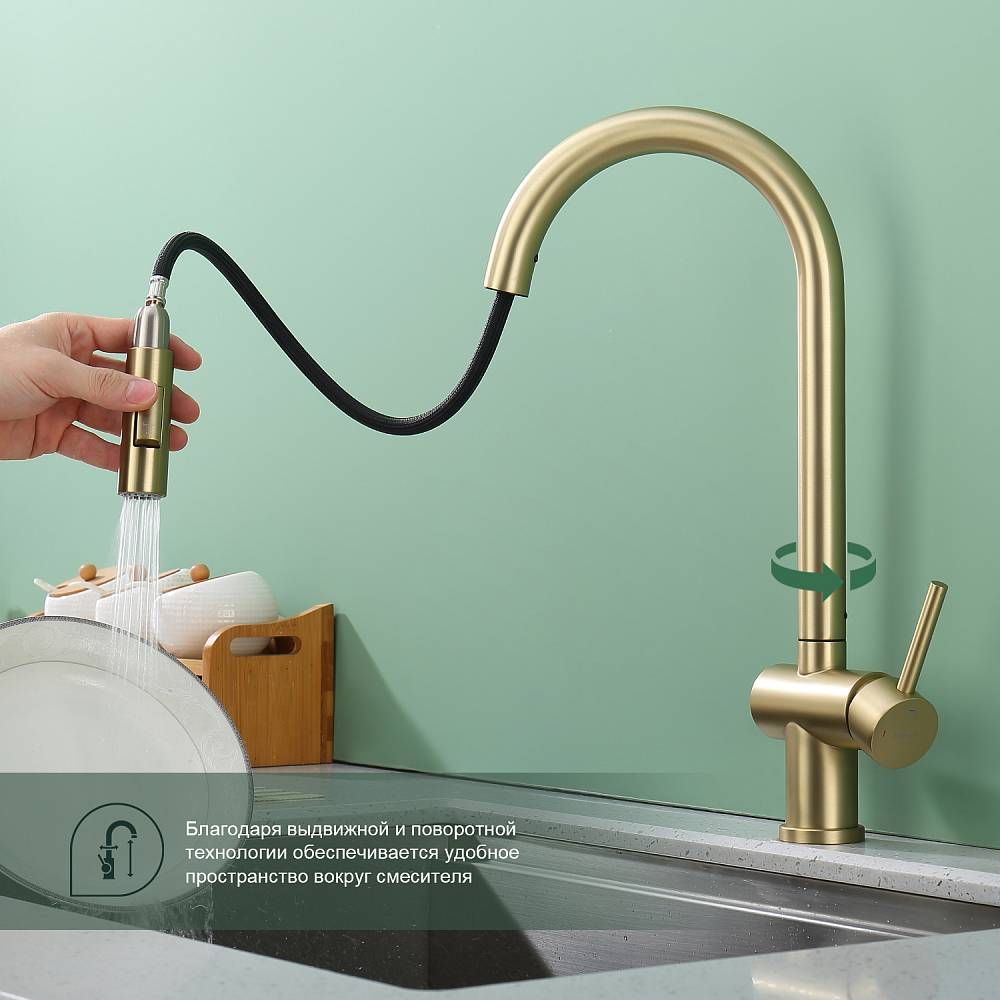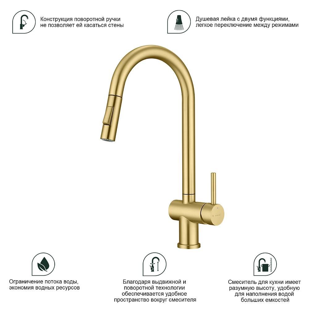 Смеситель для кухни Splenka S204.49.03 с выдвижным изливом золотой сатин купить
