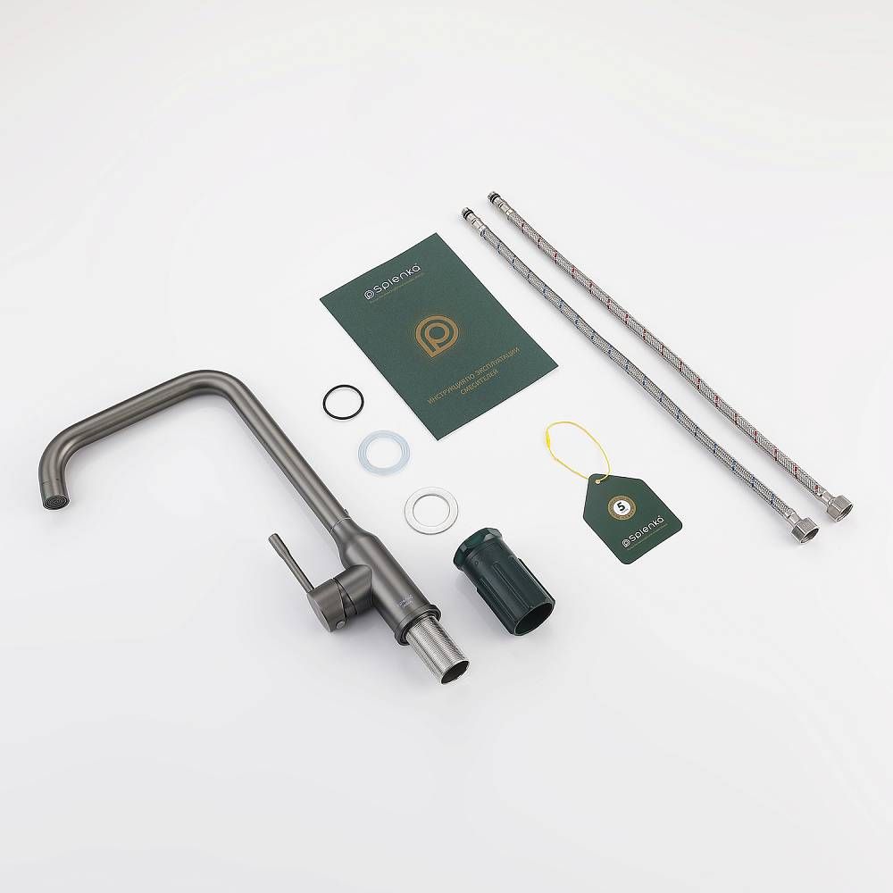 Смеситель для кухни Splenka S206.40.09. Цвет: графит. Кухонные смесители торговой марки SPLENKA широко известны своей надежностью. Строгий контроль качества сопровождает весь цикл производства, включающий материалы и технологии по немецким стандартам: аэратор позволит сэкономить до 30% воды и обеспечит равномерный поток воды. Душевая лейка с двумя функциями, легкое переключение между режимами. Смеситель для кухни имеет разумную высоту, удобную для наполнения водой больших емкостей. Поворотный излив позволяет с большим удобством пользоваться им на кухне. Встроенный аэратор эффективно фильтрует примеси и уменьшает шум от импульсов воды. Гладкая внутренняя стенка обеспечивает мягкий поток воды. Высококлассная технология делает поверхность яркой и блестящей. Подходит к кухонным мойкам практически любых размеров и форм. Быстрый монтаж и простота в обращении позволяют экономить время до 50%. Гарантия на сантехнику от производителя – 5 лет на смеситель и 2 года на покрытие. Комплект включает инструкцию по установке и гарантийный талон.