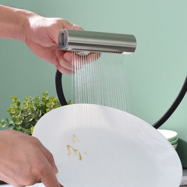 Смеситель оснащён выдвижным и поворотным изливом с режимом «душ», который позволяет выбирать между обычной струёй воды и мягкой душевой насадкой. Благодаря этому вы сможете легко и быстро настроить нужный режим в зависимости от ваших потребностей и предпочтений.
