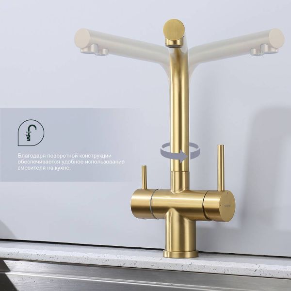 Смеситель для кухни Splenka S70.61.03 с подключением фильтра золотой сатин