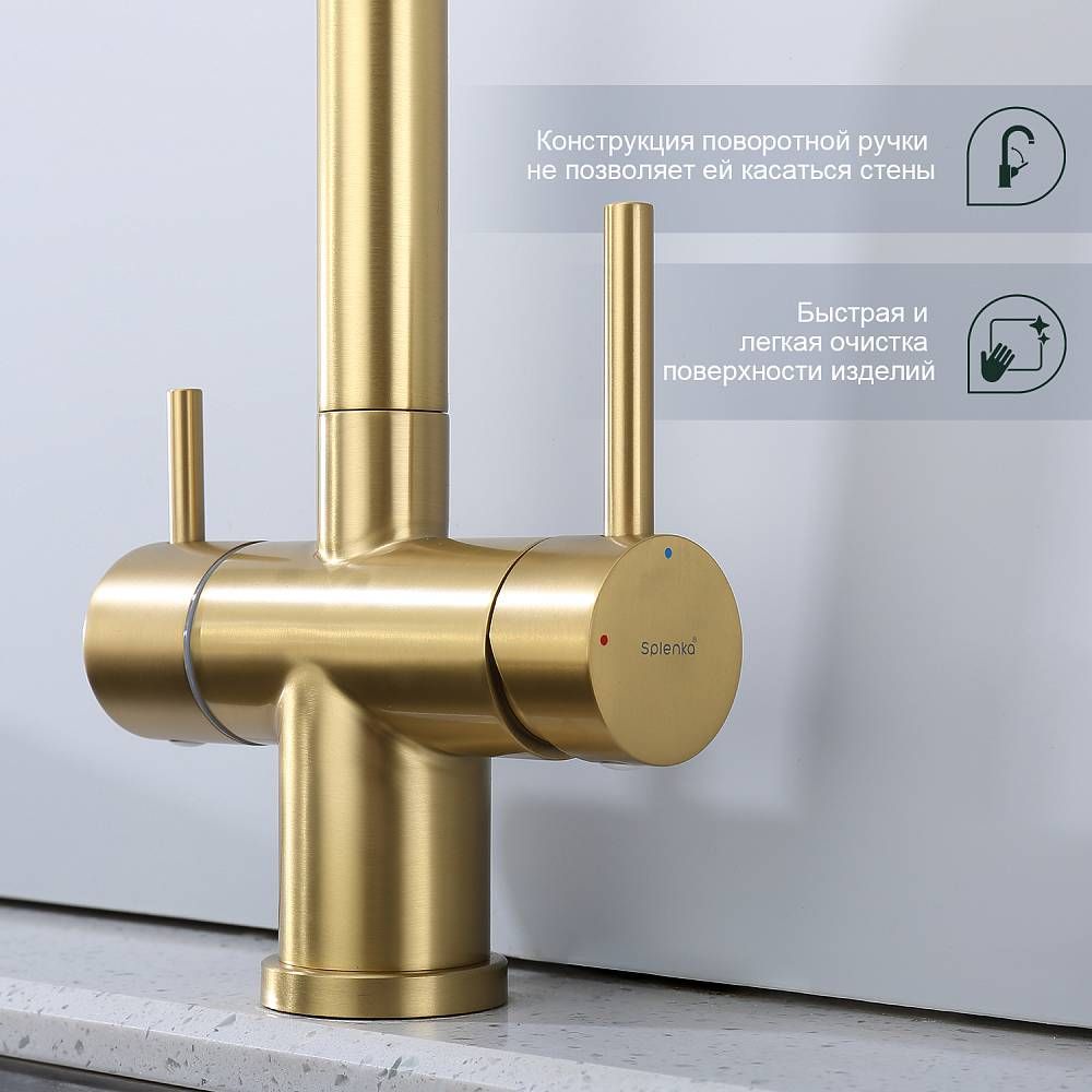 Смеситель для кухни Splenka S70.61.03 с подключением фильтра золотой сатин купить