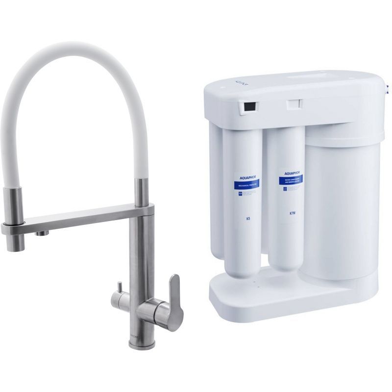 Смеситель для кухни Swedbe Selene Plus 8441M в комплекте с фильтром Аквафор Морион нержавеющая сталь/белый