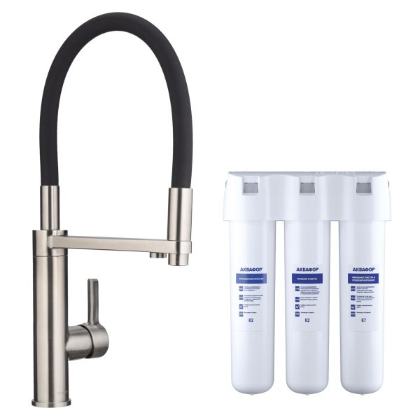 Смеситель для кухни Swedbe Selene Plus 8640K в комплекте с фильтром Аквафор Кристалл нержавеющая сталь/чёрный
