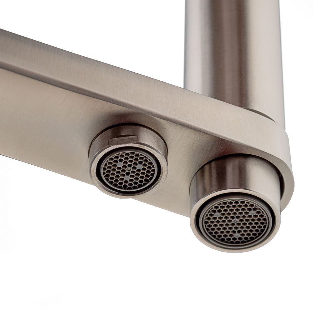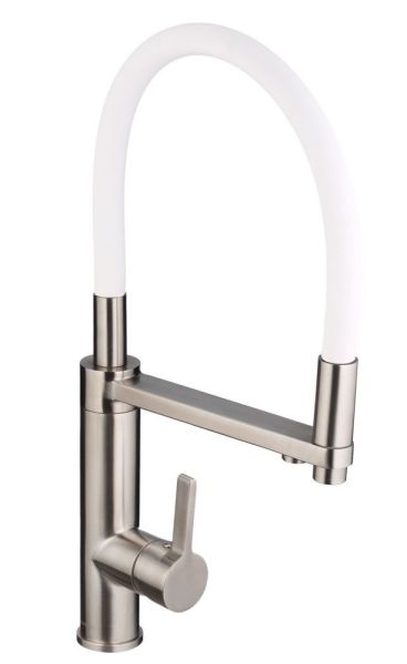 Кухонный смеситель для фильтра с гибким изливом 2 в 1Излив с поворотом 180 градусов.Изготовлен полностью из пищевой нержавеющей стали (SUS 304).Изолированный отдельный канал для фильтрованной воды. Керамический картридж Sedal.Аэратор Neoperl.Гибкая подводка SoftPEX.Управление всеми режимами одной рукояткой.Цвет излива: белый