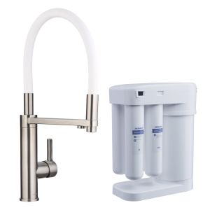 Смеситель для кухни Swedbe Selene Plus 8641M в комплекте с фильтром Аквафор Морион нержавеющая сталь/белый