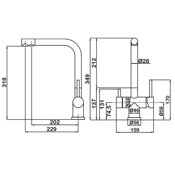 • Высота смесителя: