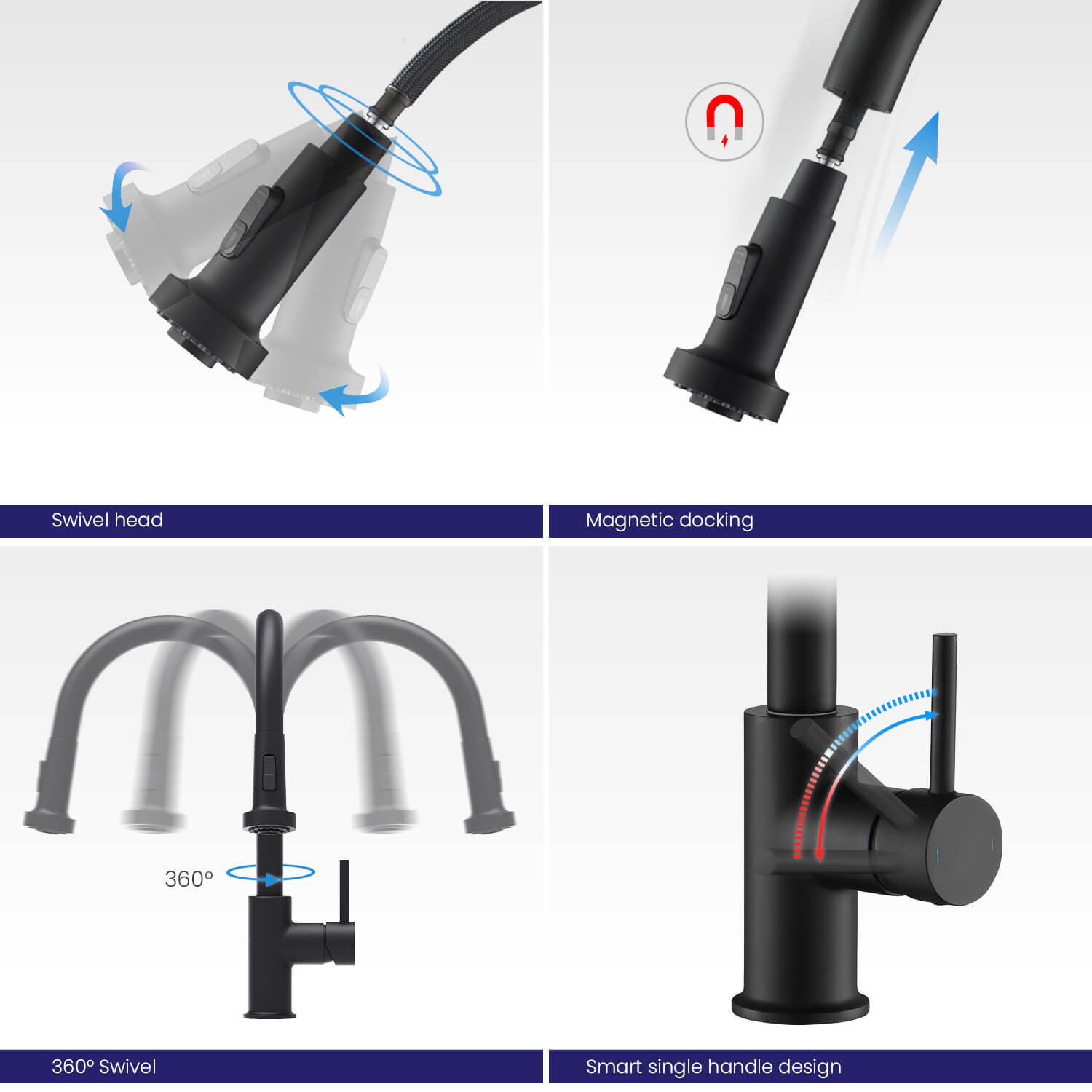 Смеситель для кухни Timo Saona с выдвижной лейкой чёрный 2316/03FL