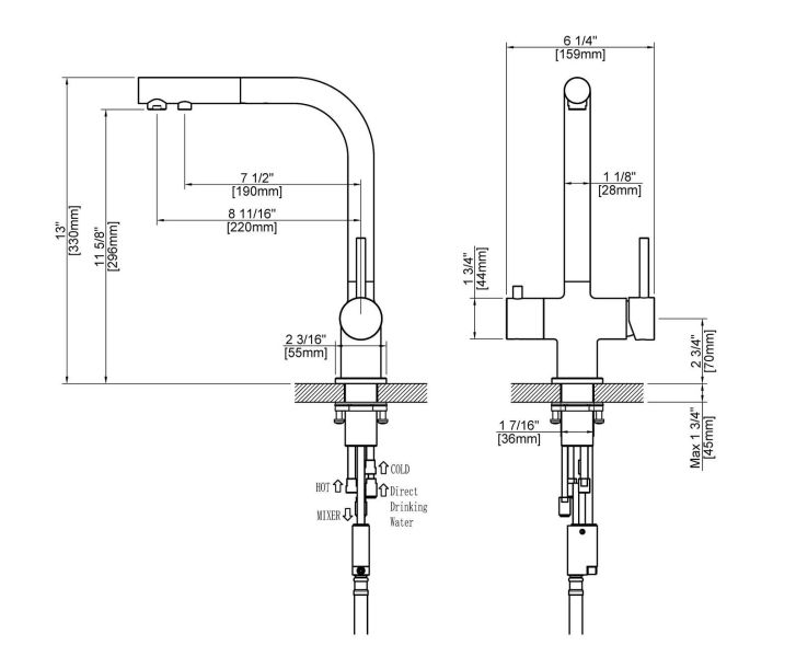 Гибкий излив:нет