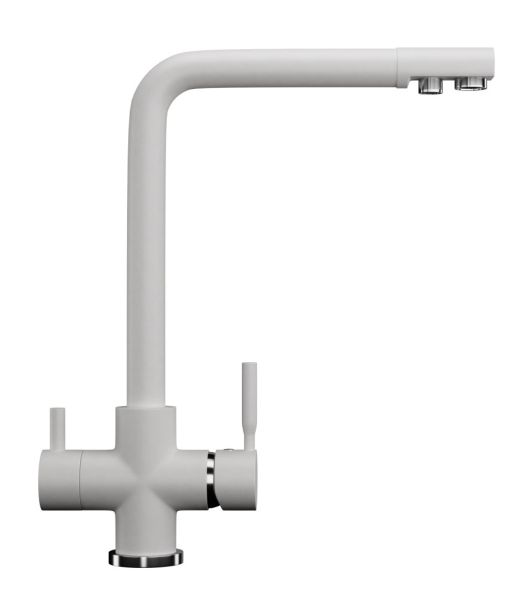 Высокоэргономичный кухонный смеситель с дополнительным краном для подключения фильтрованной воды, оснащенный кран-буксой с керамическими пластинами. Реализован тройной подвод воды через один излив: холодная, горячая и фильтрованная. Переход с одного подвода на другой производится поворотом рычага. Набор для соединения с фильтром входит в комплект. Система фильтрации приобретается дополнительно и монтируется под мойку, специальный индикатор сообщает о необходимости замены картриджа. Материал корпуса выполнен из высококачественной латуни, а окрашивание под искусственный камень в цвет мойки ULGRAN выполняется на собственном производстве, что позволяет идеально попасть в фирменный цвет ULGRAN. В качестве керамического картриджа используется известный бренд Wanhai диаметром 35 мм с высокой пропускной способностью в 500 тысяч циклов открывания-закрывания. На подвижные части картриджа Wanhai нанесена специальная невымываемая силиконовая смазка, а керамические пластины изготовлены из 96 процентов оксида алюминия, что, в сочетании с высоким качеством шлифовки обеспечивает долговечность, надежность, плавность хода рукоятки. Смеситель оборудован съемным пластиковым аэратором для экономии воды и поворотным изливом на 360 градусов. В комплектацию входят: керамический картридж Wanhai, гибкая подводка, комплект крепежных элементов, кран-букса с керамическими пластинами для дополнительного излива для фильтрованной воды, набор для подсоединения фильтра питьевой воды (гибкая подводка + переходник-цанга), технический паспорт и гарантийный талон.