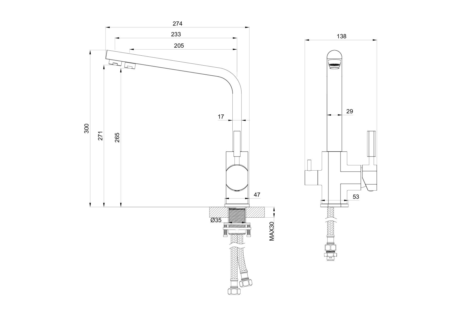Высота смесителя:30