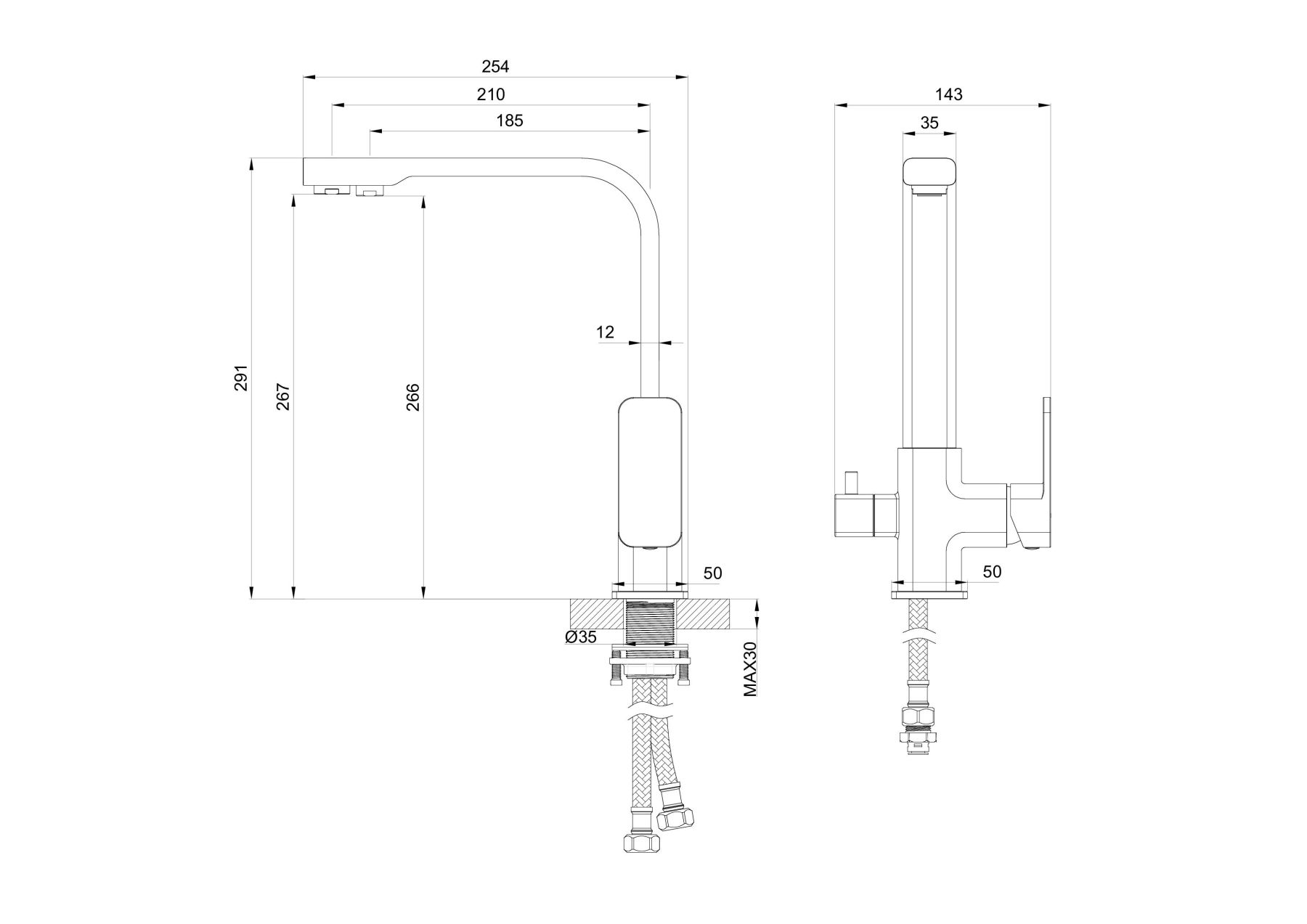 • Высота смесителя: