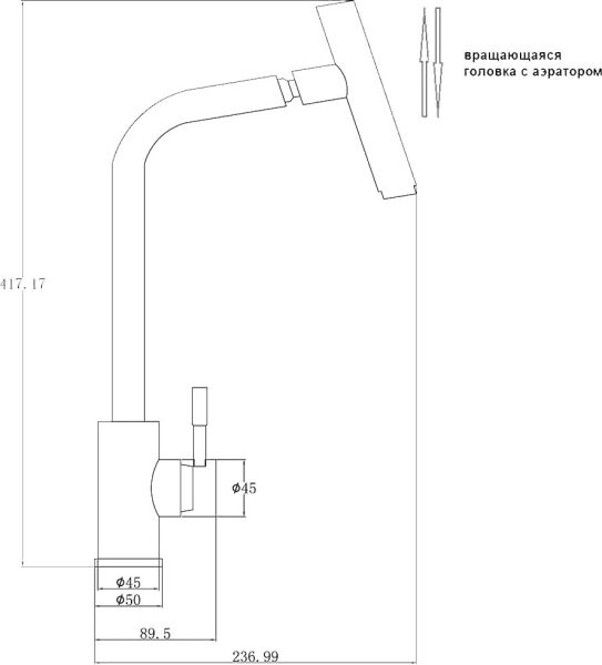 • Высота смесителя: