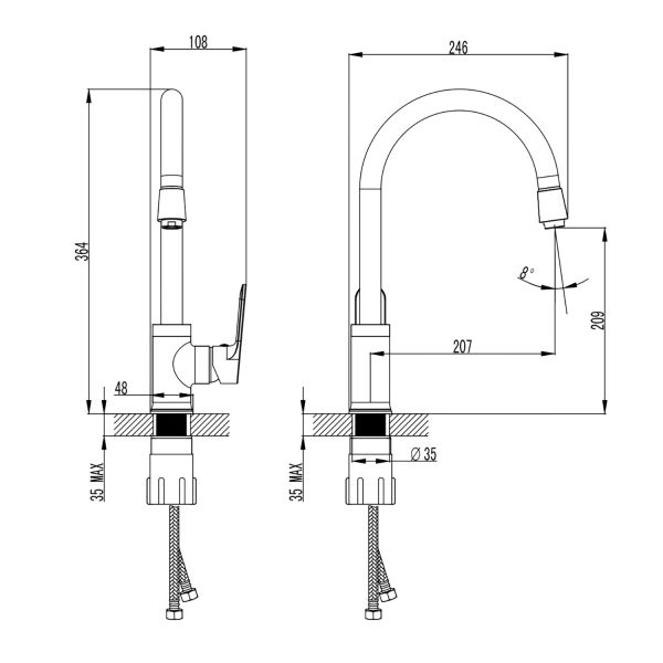 Высота смесителя:36.4