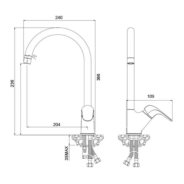 • Вращение излива поворотный