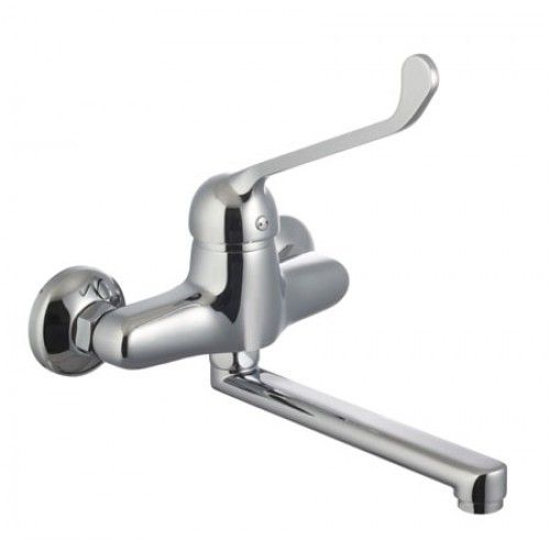 Артикул LM4611CСмеситель для кухни/умывальника с локтевой рукояткой, настенный, излив 200мм.