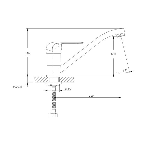 Смеситель для кухни с поворотным изливом RUSH арт.FI1835-27 из коллекции Fiji c металлической ручкой и имеет рычажное управление. В смеситель установлен картридж D-35 (RSH102) с керамическими пластинами. Высота смесителя 144 мм. Излив поворотный 360гр, 199 мм. Высота излива до аэратора 200 мм. Аэратор изготовлен из пластика с нержавеющим корпусом, угол наклона аэратора- 14 гр. В комплекте гибкая подводка с латунными гайками 35см - 2 шт, присоединительная гайка S-30мм, втулка-27мм, фум-лента, индивидуальный пакет, паспорт, гарантийный талон.