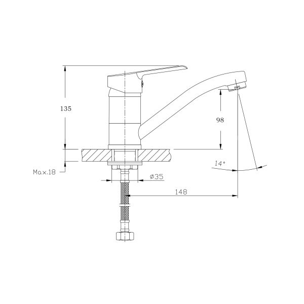 • Высота смесителя: